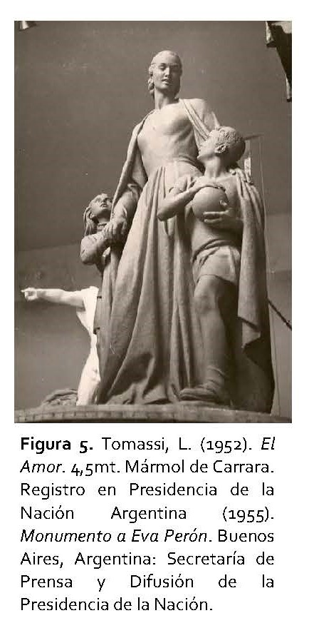 En el siguiente trabajo analizo un corpus de esculturas encargadas, aprobadas y financiadas por el Estado Nacional argentino y luego realizadas por el artista italiano Leone Tomassi entre 1952 y 1955 para formar parte del Monumento al Descamisado/Monumento a Eva Perón con el objetivo general de estudiar su inscripción en el programa estético visual oficial y, desde allí, discutir su co-operación en la construcción y expansión de la hegemonía peronista. Con tal propósito, me subscribo a una semiótica general de la cultura desde los postulados del Primer y del Segundo Programa Semiótico y utilizo las herramientas metodológicas de la semiótica textual visual para analizar los modos de producción sígnica utilizados, las enciclopedias convocadas y los topics configurados. A partir de ello, evidencio una interacción de contenidos nucleares convergentes al interior de un particular humanismo de inspiración cristiana que habría sido convocado con la intensión de afirmar y expandir el proyecto político peronista en la cultura. Con el análisis y la interpretación de estos hallazgos busco contribuir a los estudios culturales del primer peronismo y actualizar el diálogo arte-política-religión valuando la función semiótica de los textos estético-artísticos en la perduración de los proyectos políticos.